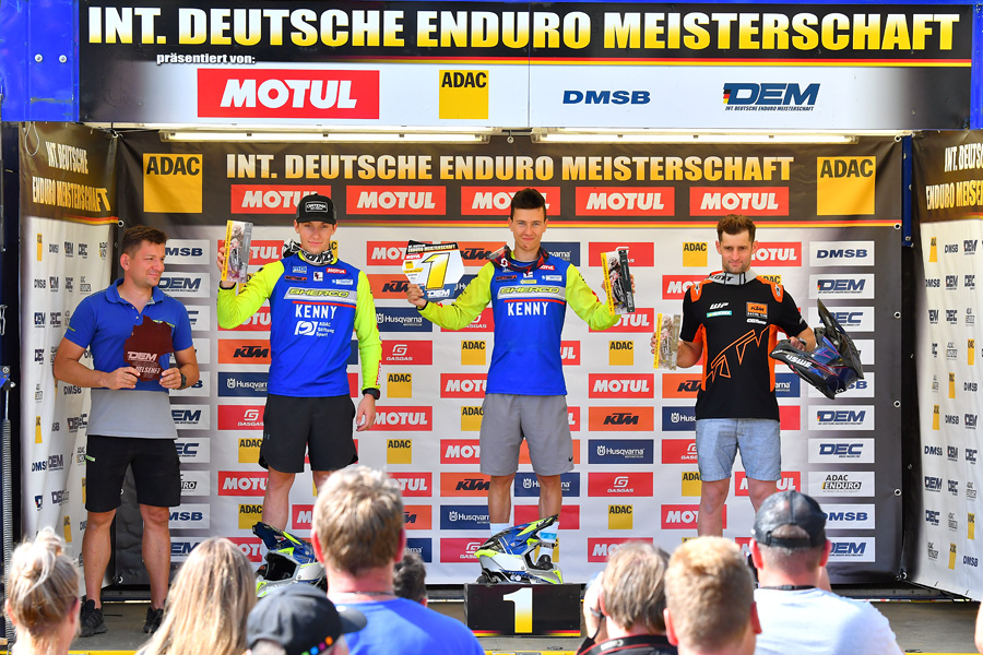 Die Klassensiege gingen an Jeremy Sydow (E1), Thierry Pittens (E2) und Luca Fischeder (E3). Robert Friedrich aus Tschechien gewann mit seiner GasGas die Junioren-Wertung. Die Mannschaftswertung war wieder eine klare Angelegenheit für das Team des ADAC Sachsen mit den drei Tagesschnellsten in ihrer Aufstellung. Und im DMSB Enduro Cup war erneut Fynn Hannemann der bestimmende Fahrer, der, wie schon am Vortag, seine Kontrahenten Nic Matthias und Clemens Voigt auf die Plätze verwies.