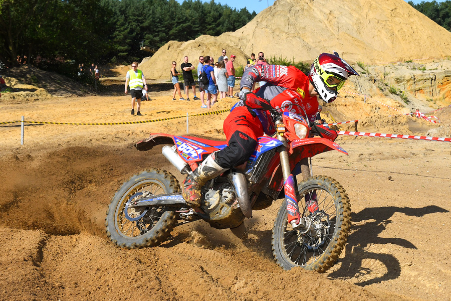 Bis kurz vor Schluss sah es allerdings aus, als könnte Florian Görner erstmals unter die Top Drei fahren. Der KTM-Fahrer lag immer knapp und nur wenige Sekunden vor Hübner. Doch im vorletzten Test stürzte Florian und büßte so alle Chancen auf das Podium ein. „Das war sehr, sehr ärgerlich“, zeigt er sich im Ziel sichtlich zerknirscht, „ich bin in der Sandgrube bei einem Bergab-Sprung ganz komisch aufgekommen und komplett weggerutscht. Leider bin ich danach auch nicht gleich wieder losgekommen“, seufzt der Erzgebirger, der aber versichert, dieses Jahr unbedingt noch in die Top Drei fahren zu wollen.