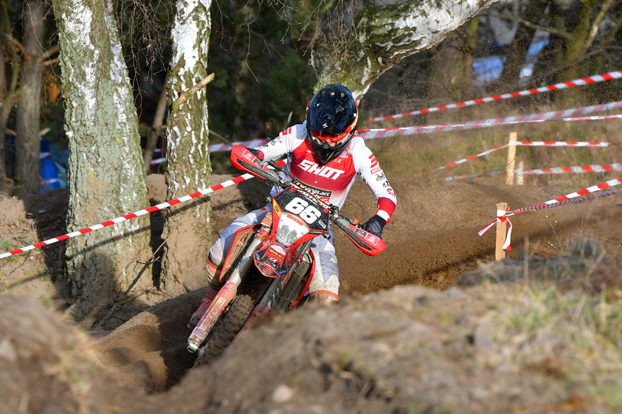 Jaroslav Kalny gab beim letztjährigen „Rund um Zschopau“ als E3-Klassensieger bereits seine Visitenkarte ab. Nun gelang ihm Rang zwei. „Ich hatte zwar ein paar kleine Fehler in den Tests, aber im Ganzen war es ein guter Saisoneinstand“, so der Sherco-Fahrer, der, wie auch Matyas Chlum, die komplette DEM-Saison bestreiten wird.