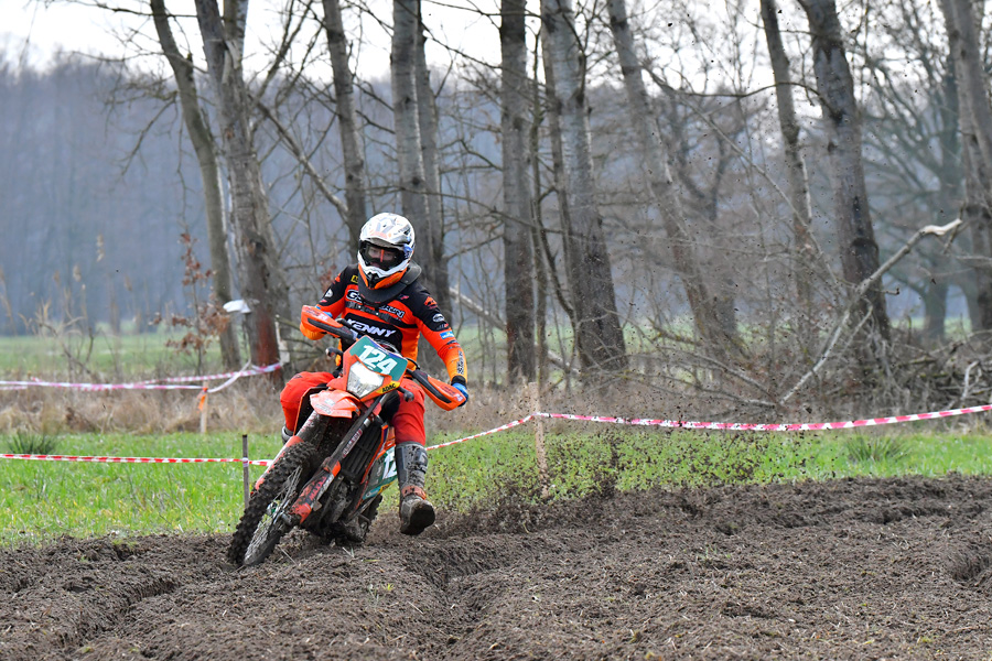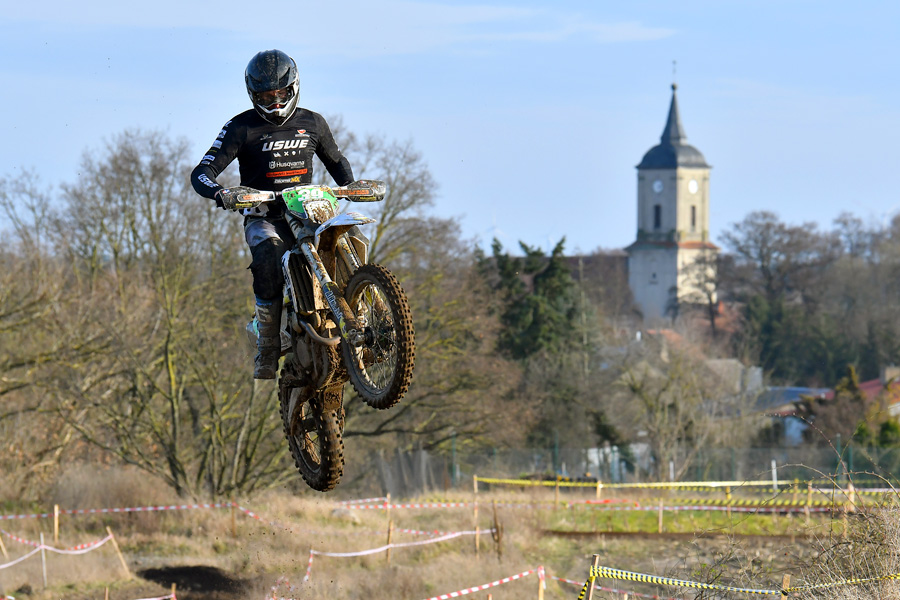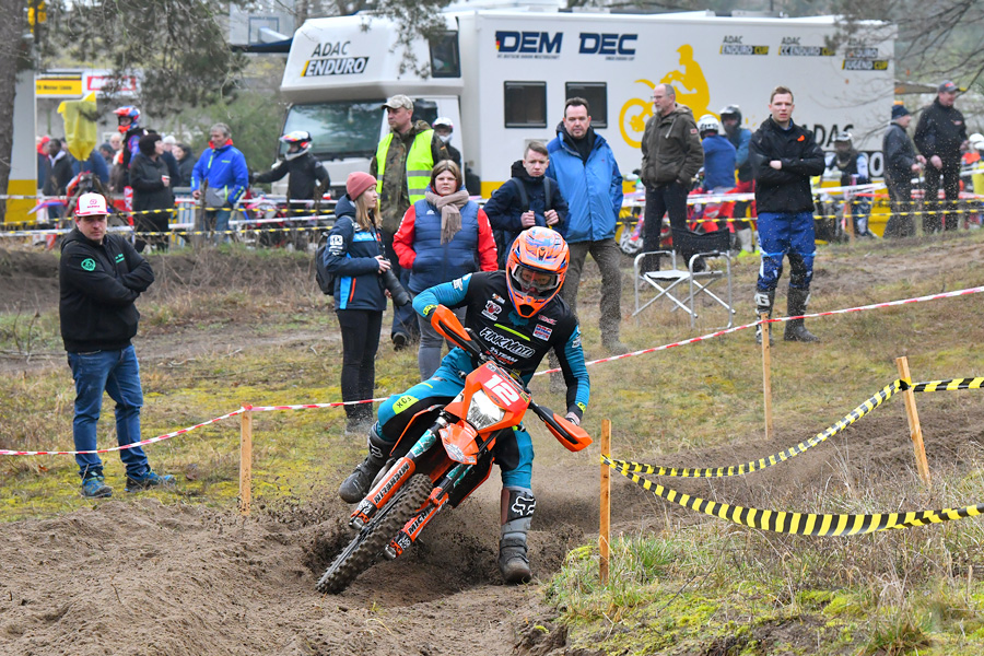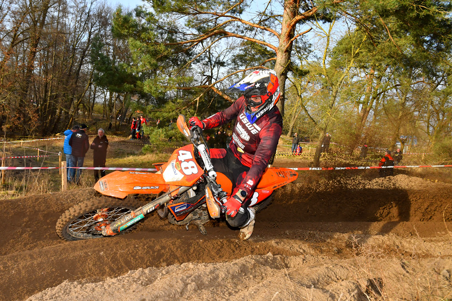 Die Feuertaufe der nationalen Junioren-Kategorie, die momentan noch recht zart besetzt ist, gewann Felix Melnikoff (KTM) vor Arvid Meyer (Husqvarna) und Niclas Leon Kallmeyer (KTM). „Ich bin etwas angeschlagen, mit Halsschmerzen und Schnupfen an den Start gegangen. Leider nicht die besten Voraussetzungen. Dennoch lief es ganz gut, ich bin zufrieden, auch wenn gegen Ende die Kraft etwas nachgelassen hat“, resümiert der Premierensieger.